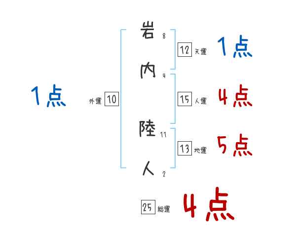 岩内陸人さんの画数の鑑定結果