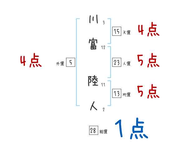 川富陸人さんの画数の鑑定結果