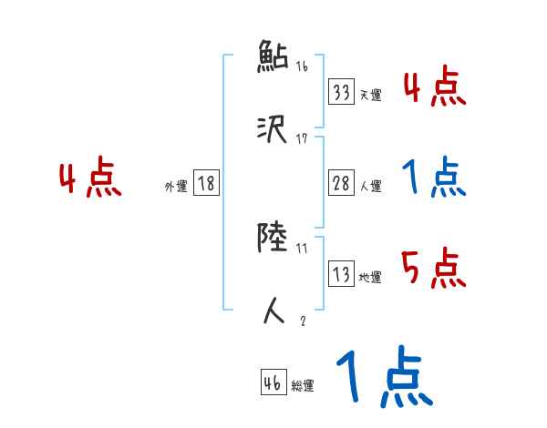 鮎沢陸人さんの画数の鑑定結果