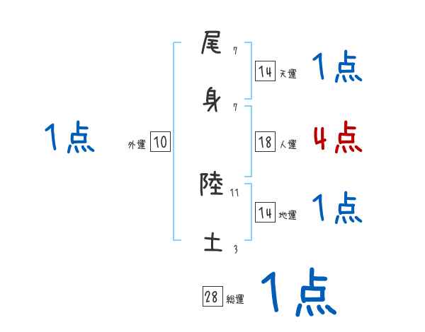 尾身陸土さんの画数の鑑定結果