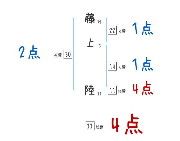 藤上陸さんの画数の鑑定結果