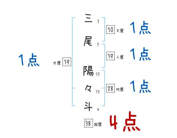 三尾陽々斗さんの画数の鑑定結果