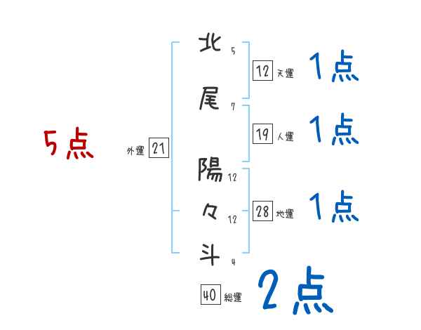 北尾陽々斗さんの画数の鑑定結果