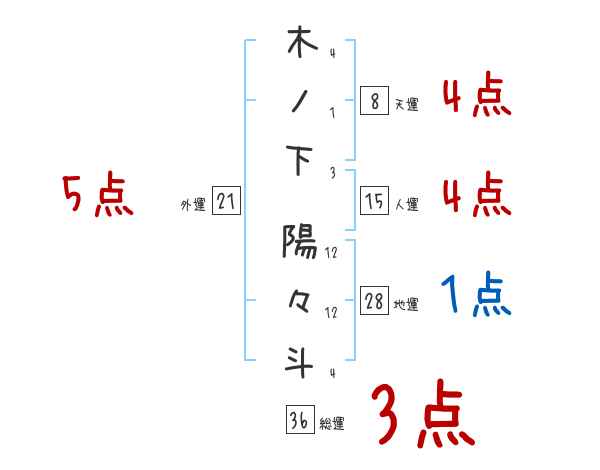 木ノ下陽々斗さんの画数の鑑定結果