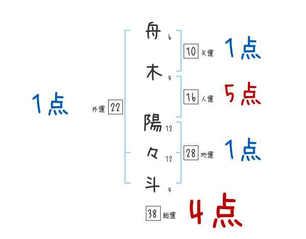 人運![]() | 舟木陽々斗さんの人運は16画の5つ星!人望が厚く大きく発展する。逆転成功が見える。 性格や才能などを表す2番目に重要な運勢です。人間関係や協調性、社会的な成功に影響します。主に20歳から50歳ぐらいまでの中年期の運勢を表します。 |