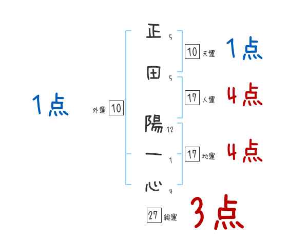 正田陽一心さんの画数の鑑定結果