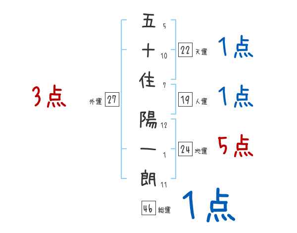 五十住陽一朗さんの画数の鑑定結果
