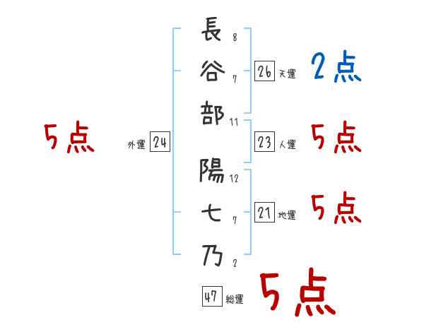 外運![]() | 長谷部陽七乃さんの外運は24画の5つ星!家庭運が良く順調な人生。金運にも恵まれる。 生活面を象徴する運勢です。外部から受ける影響力を表し、結婚運、家庭運や職場、環境への順応性を表します。 |