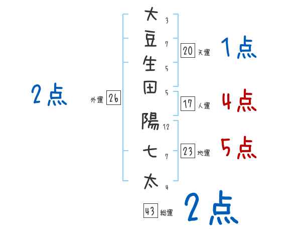 大豆生田陽七太さんの画数の鑑定結果