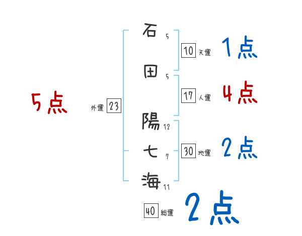 外運![]() | 石田陽七海さんの外運は23画の5つ星!想像力に優れ活力がある。一代で成功し名誉を手に入れる。 生活面を象徴する運勢です。外部から受ける影響力を表し、結婚運、家庭運や職場、環境への順応性を表します。 |
