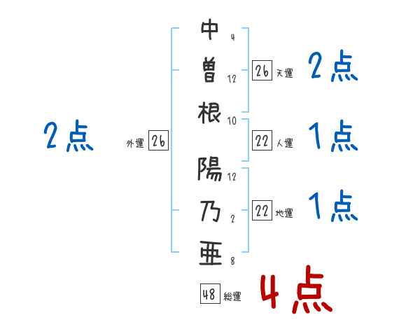 中曽根陽乃亜さんの画数の鑑定結果