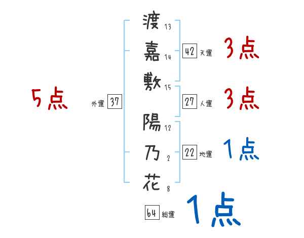 渡嘉敷陽乃花さんの画数の鑑定結果