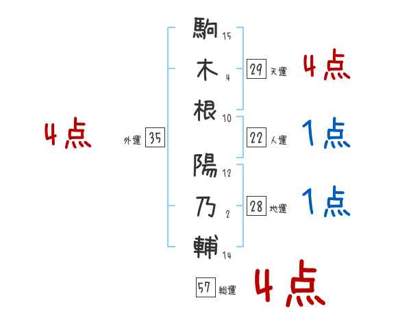 駒木根陽乃輔さんの画数の鑑定結果