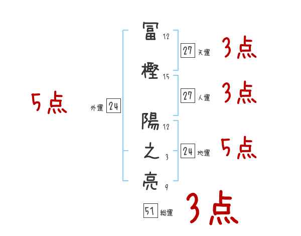 冨樫陽之亮さんの画数の鑑定結果