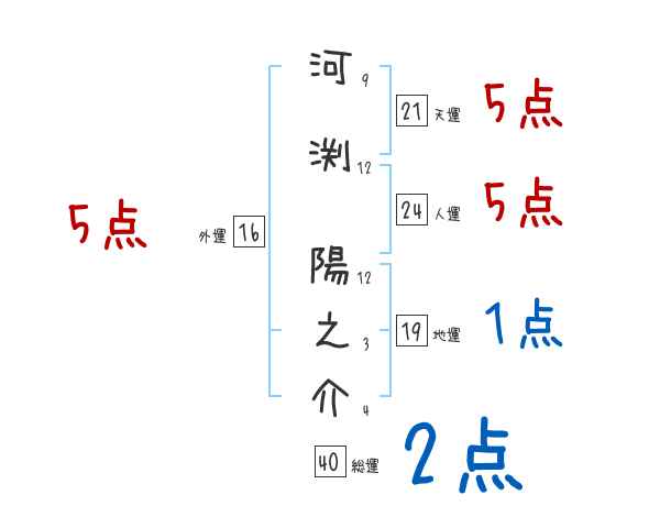 外運![]() | 河渕陽之介さんの外運は16画の5つ星!人望が厚く大きく発展する。逆転成功が見える。 生活面を象徴する運勢です。外部から受ける影響力を表し、結婚運、家庭運や職場、環境への順応性を表します。 |