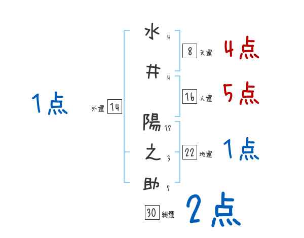 水井陽之助さんの画数の鑑定結果