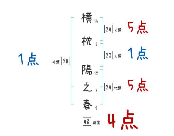 横枕陽之春さんの画数の鑑定結果