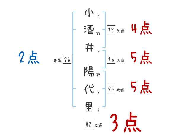 小酒井陽代里さんの画数の鑑定結果