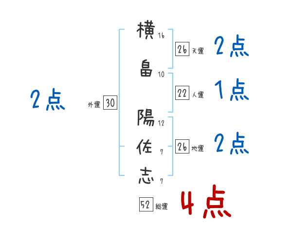 総運![]() | 横畠陽佐志さんの総運は52画の4つ星!先見性と独創性に優れ考える力がある。強運の持ち主。 あなたの人生を表す1番重要な運勢です。生涯を通じて影響する総合運となり、主に50歳以降の晩年期に影響を及ぼします。 |