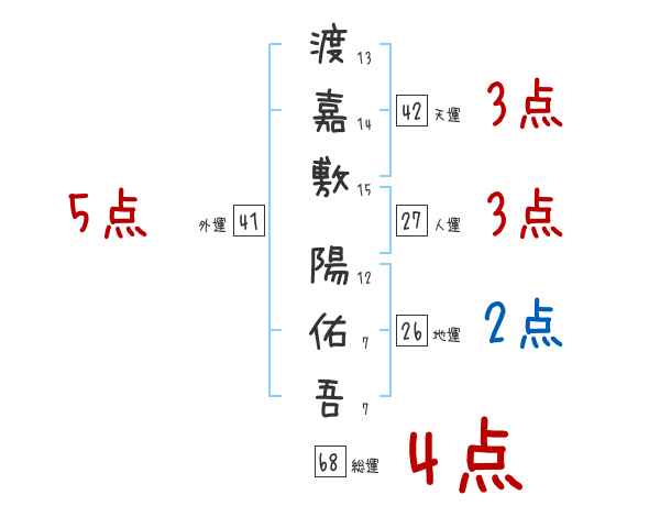 渡嘉敷陽佑吾さんの画数の鑑定結果