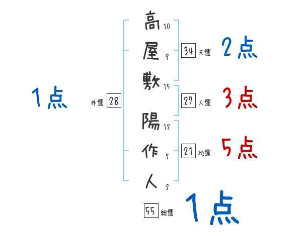 高屋敷陽作人さんの総運は55画の1つ星