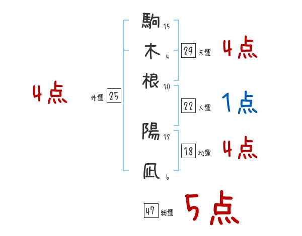 総運![]() | 駒木根陽凪さんの総運は47画の5つ星!実力が開花し発展する円満な人生。財に恵まれる。 あなたの人生を表す1番重要な運勢です。生涯を通じて影響する総合運となり、主に50歳以降の晩年期に影響を及ぼします。 |