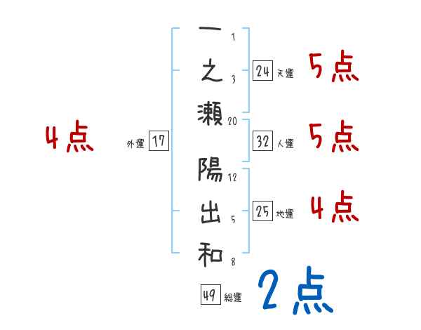 一之瀬陽出和さんの画数の鑑定結果