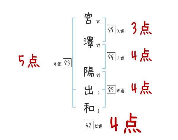 宮澤陽出和さんの画数の鑑定結果