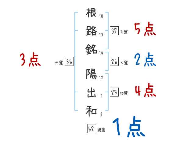 根路銘陽出和さんの画数の鑑定結果