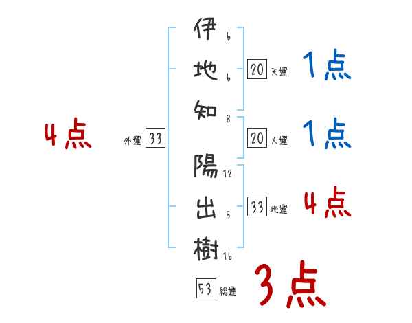 伊地知陽出樹さんの画数の鑑定結果