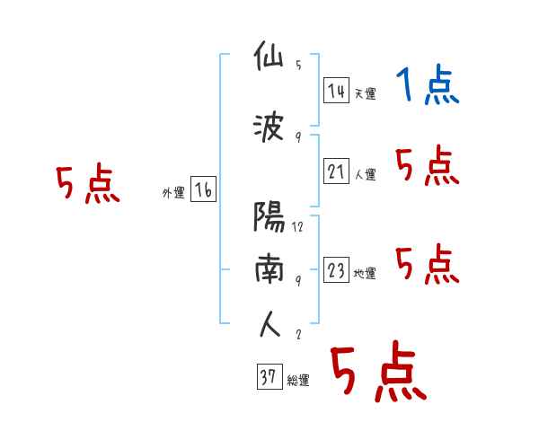天運![]() | 仙波陽南人さんの天運は14画の1つ星!人に対して優しいがストレスを溜め込みがち。人間関係のトラブルを避けるよう気をつけましょう。 家系が持つ宿命的な運勢を表します。祖先から受け継いだ苗字ですので自分の力が及びません。家柄を象徴します。 |