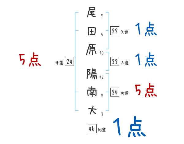 尾田原陽南大さんの画数の鑑定結果