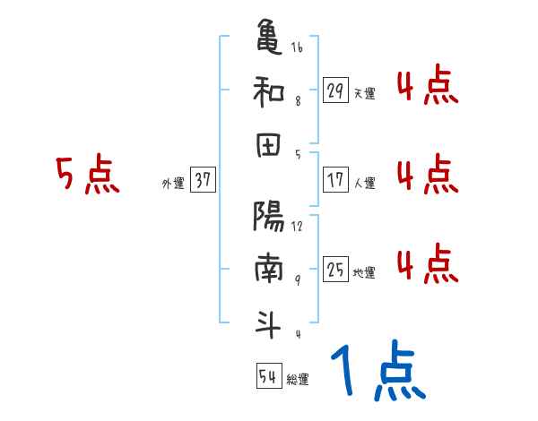 亀和田陽南斗さんの画数の鑑定結果
