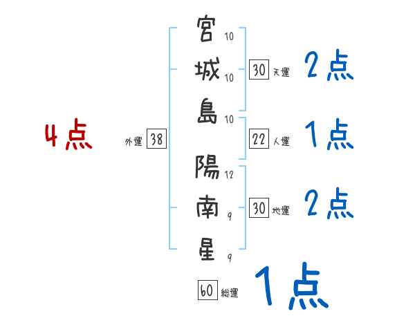 宮城島陽南星さんの総運は60画の1つ星