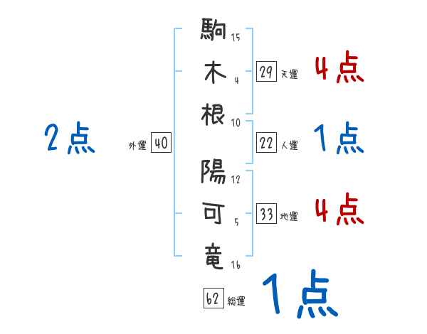 駒木根陽可竜さんの画数の鑑定結果