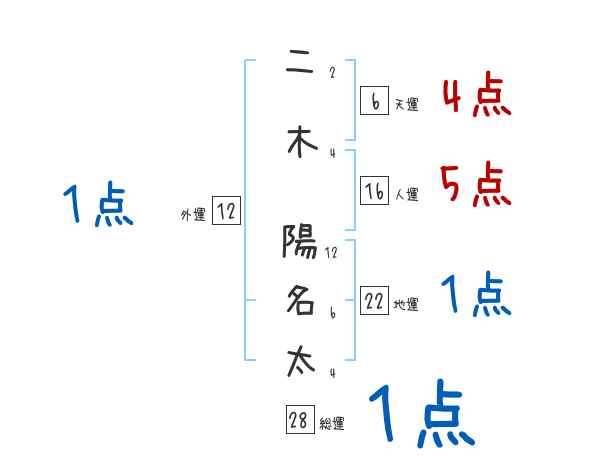 総運![]() | 二木陽名太さんの総運は28画の1つ星!家庭環境に注意。スポーツで活躍できる能力があるかも。 あなたの人生を表す1番重要な運勢です。生涯を通じて影響する総合運となり、主に50歳以降の晩年期に影響を及ぼします。 |