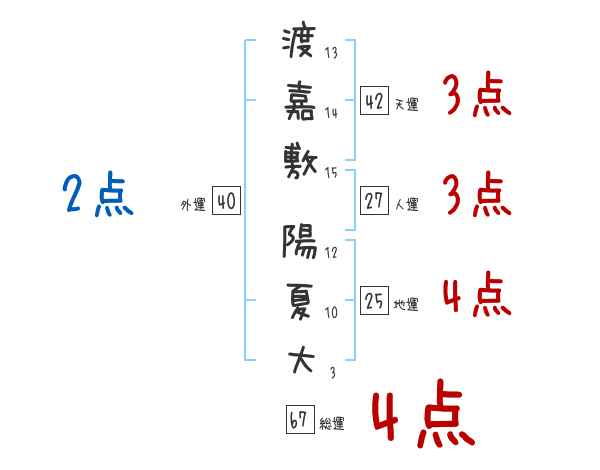 渡嘉敷陽夏大さんの画数の鑑定結果