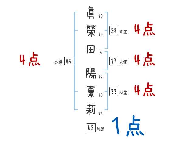 眞榮田陽夏莉さんの外運は45画の4つ星