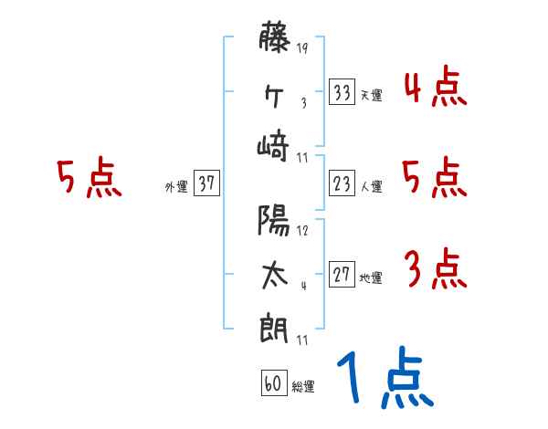 藤ヶ﨑陽太朗さんの画数の鑑定結果