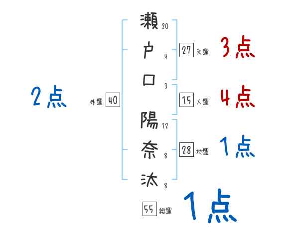 瀬戸口陽奈汰さんの画数の鑑定結果
