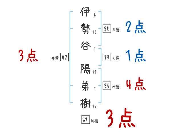 伊勢谷陽弟樹さんの画数の鑑定結果