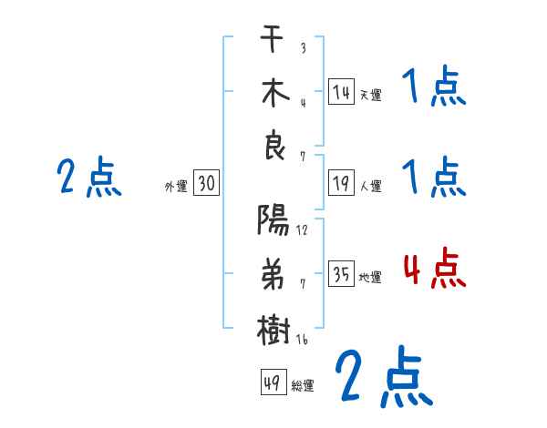 千木良陽弟樹さんの画数の鑑定結果
