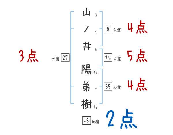 山ノ井陽弟樹さんの総運は43画の2つ星
