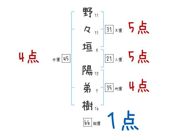 野々垣陽弟樹さんの画数の鑑定結果