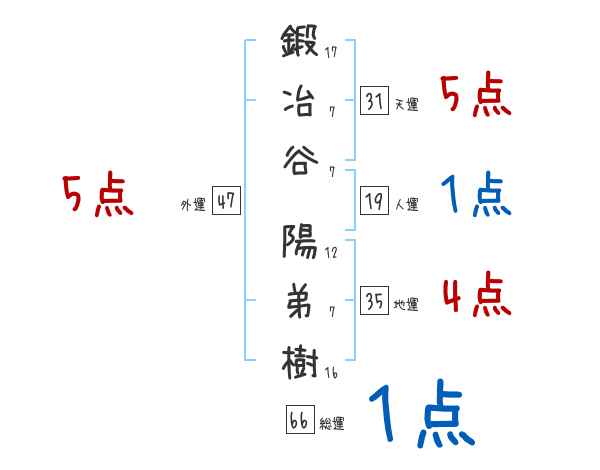 鍛冶谷陽弟樹さんの画数の鑑定結果