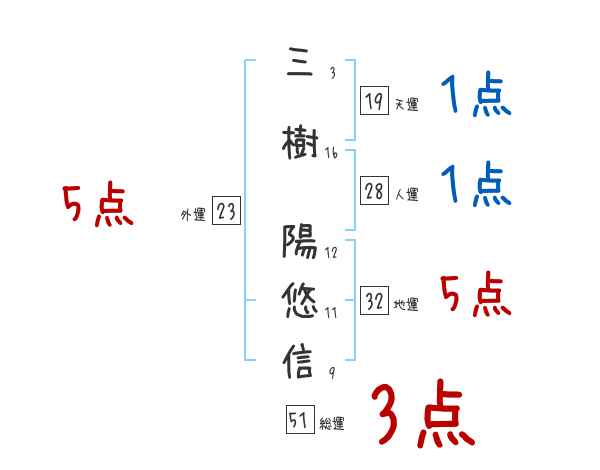 三樹陽悠信さんの画数の鑑定結果