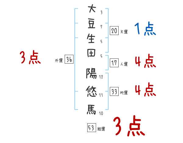 大豆生田陽悠馬さんの総運は53画の3つ星