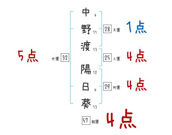 中野渡陽日葵さんの画数の鑑定結果