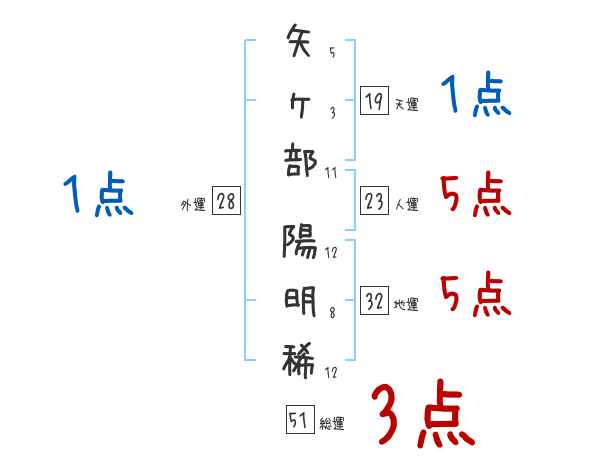 矢ヶ部陽明稀さんの画数の鑑定結果