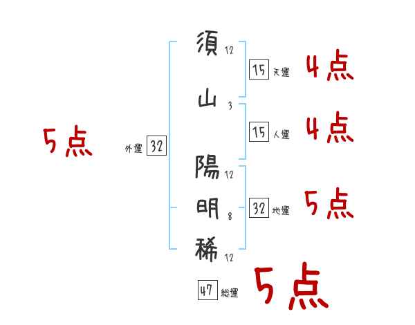須山陽明稀さんの画数の鑑定結果